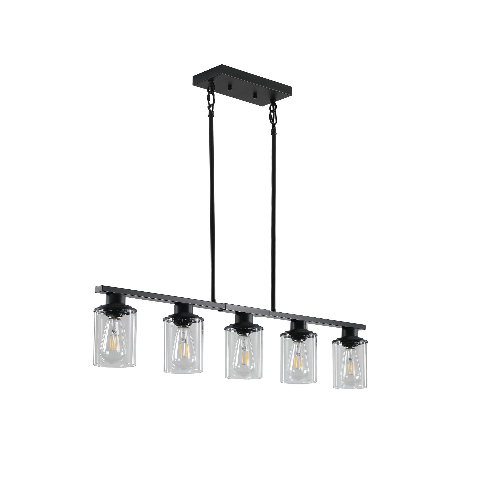 Modern Industrial 5-Light Chandelier with Clear Glass Shades, Matte Black Metal Frame Hanging Ceiling Light Fixture for Dining Room, Kitchen Island